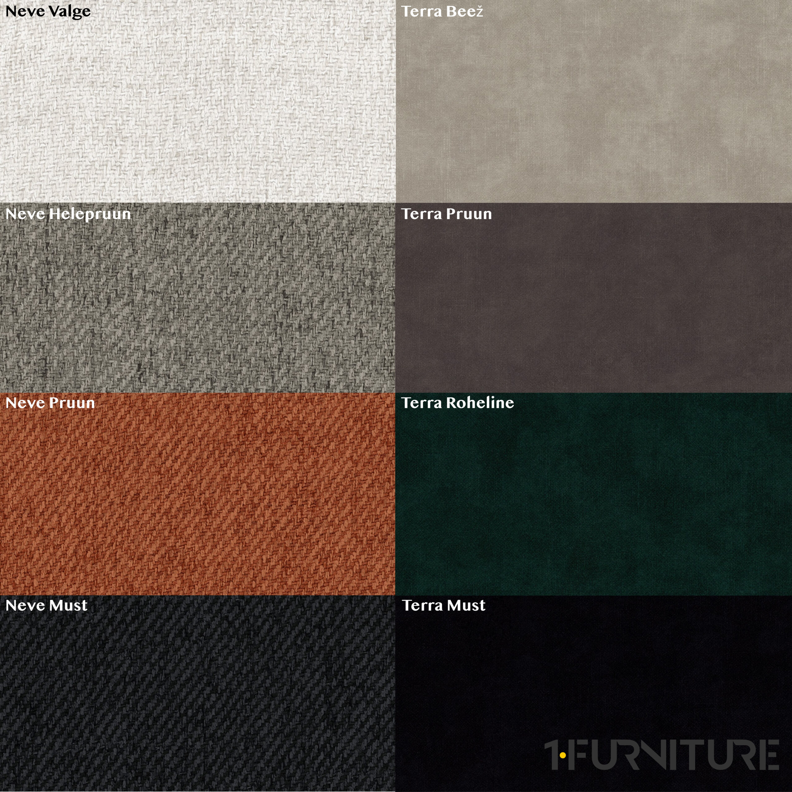 Neve Valge, Neve Helepruun, Neve Pruun, Neve Must, Terra Beež, Terra Pruun, Terra Roheline, Terra Must