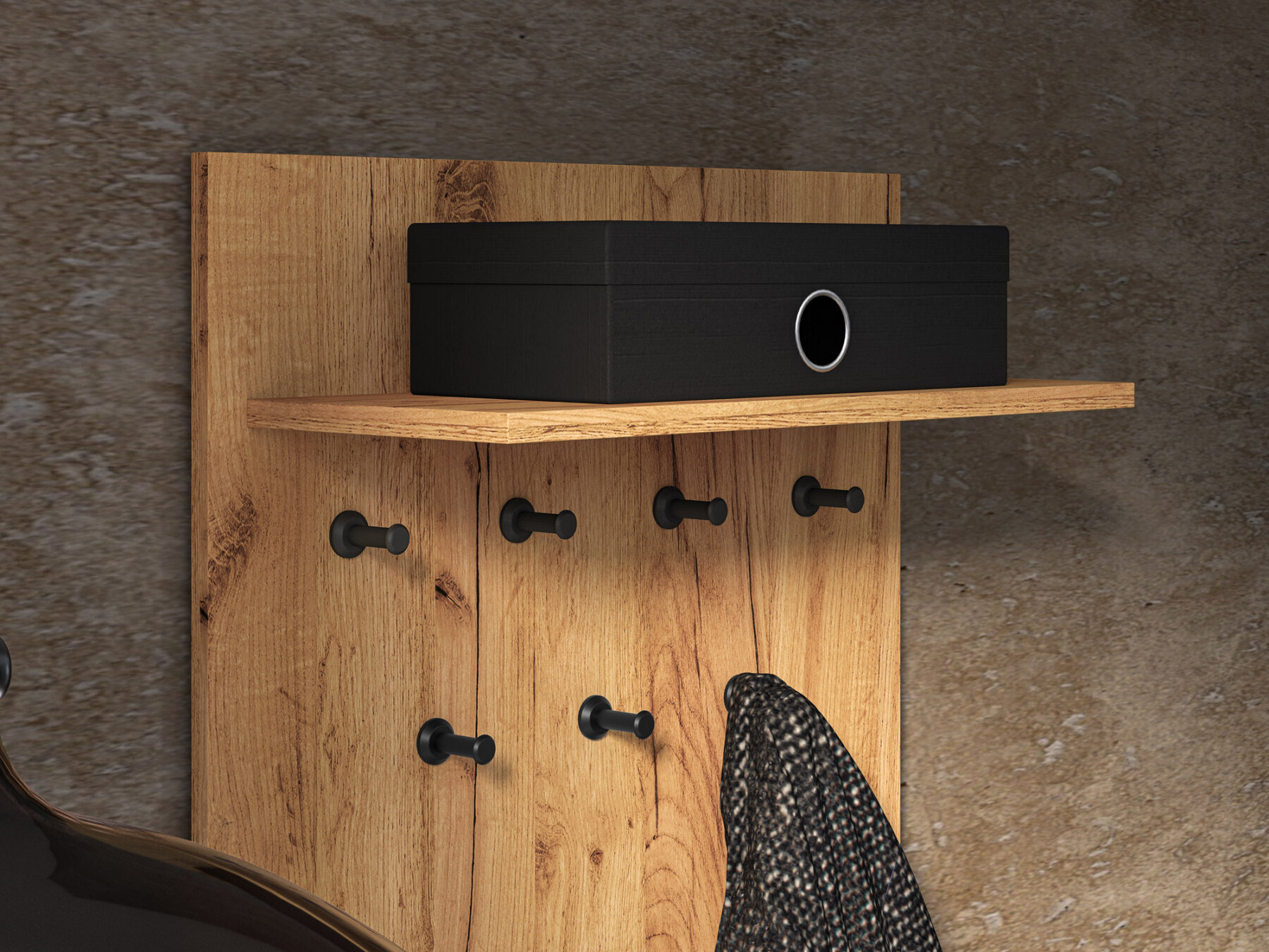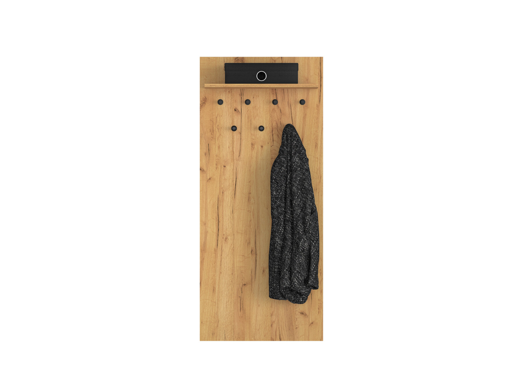 Seitse konksu pakuvad piisavalt ruumi üleriiete riputamiseks ning ülemine riiul sobib näiteks mütside või muude peakatete paigutamiseks.