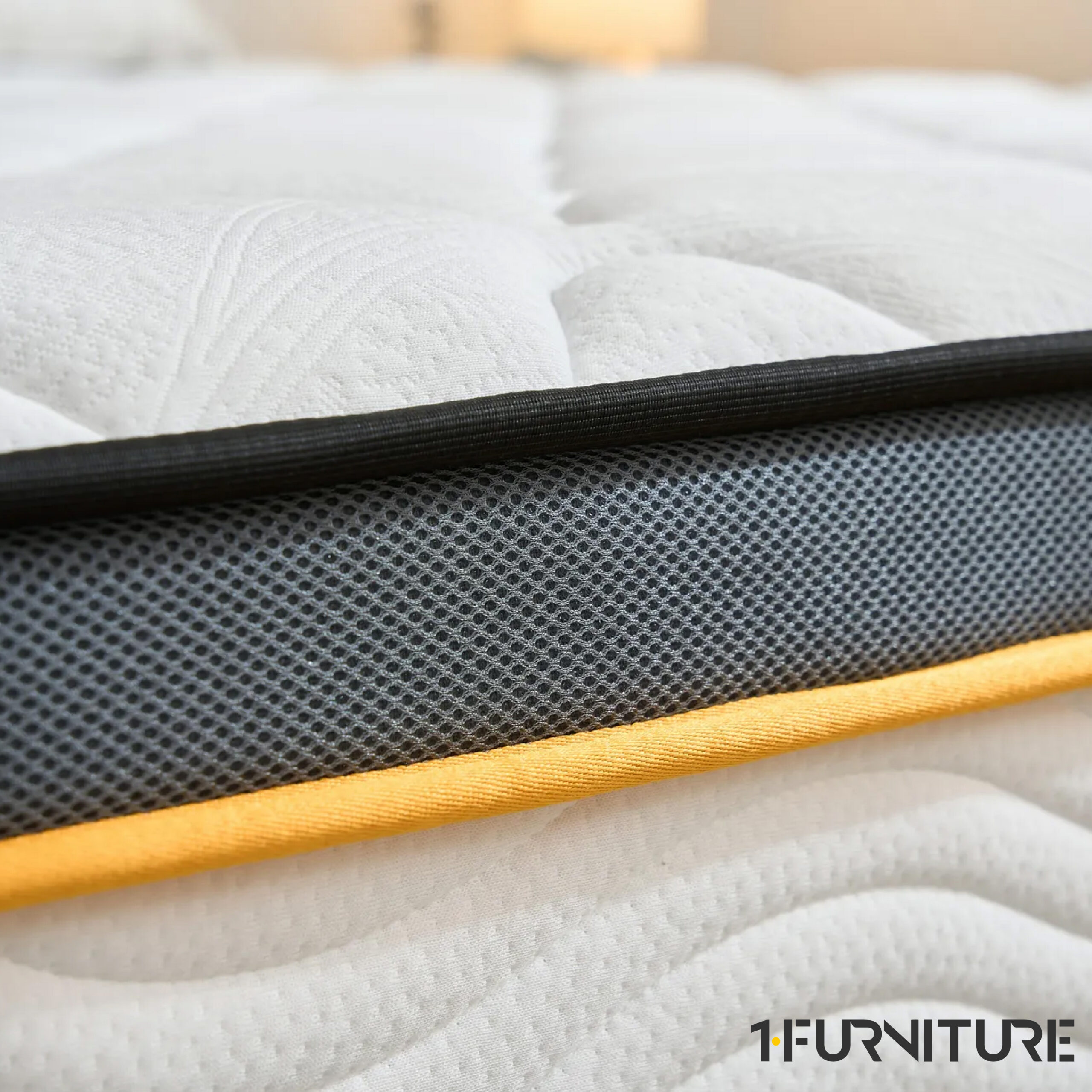 - Õhuline polsterdusmaterjal – kaitseb pehmet täidist vedrude surve eest, parandab ventilatsiooni ja hoiab madratsi kuju.