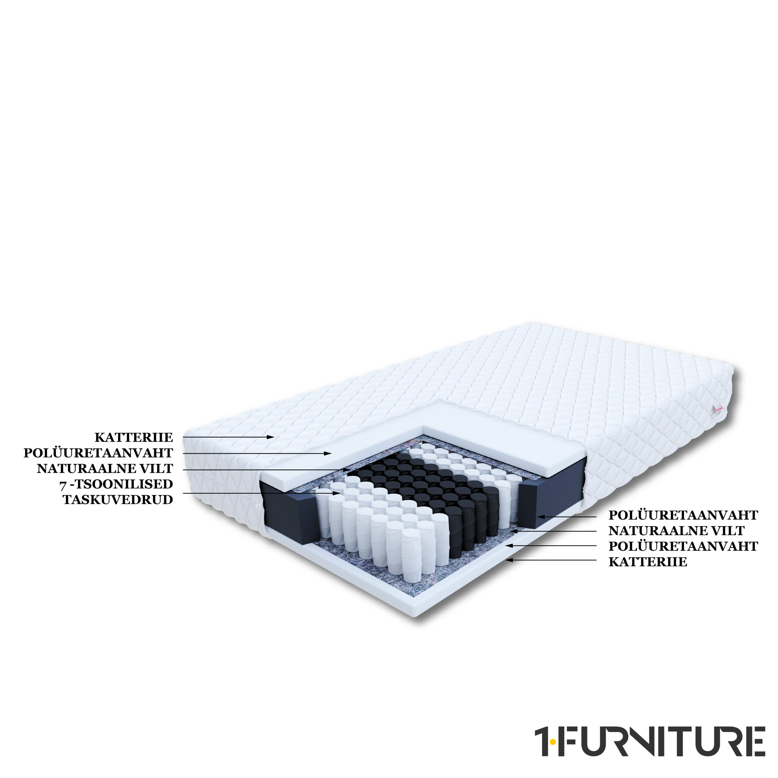 • Vedrud jagavad madratsi 7 tsooniks, mis tagab keha ühtlase kaalujaotuse. Vedrud töötavad iseseisvalt, seega ei tunne kaks magavat inimest vastastikusest liikumisest tulenevat ebamugavust.