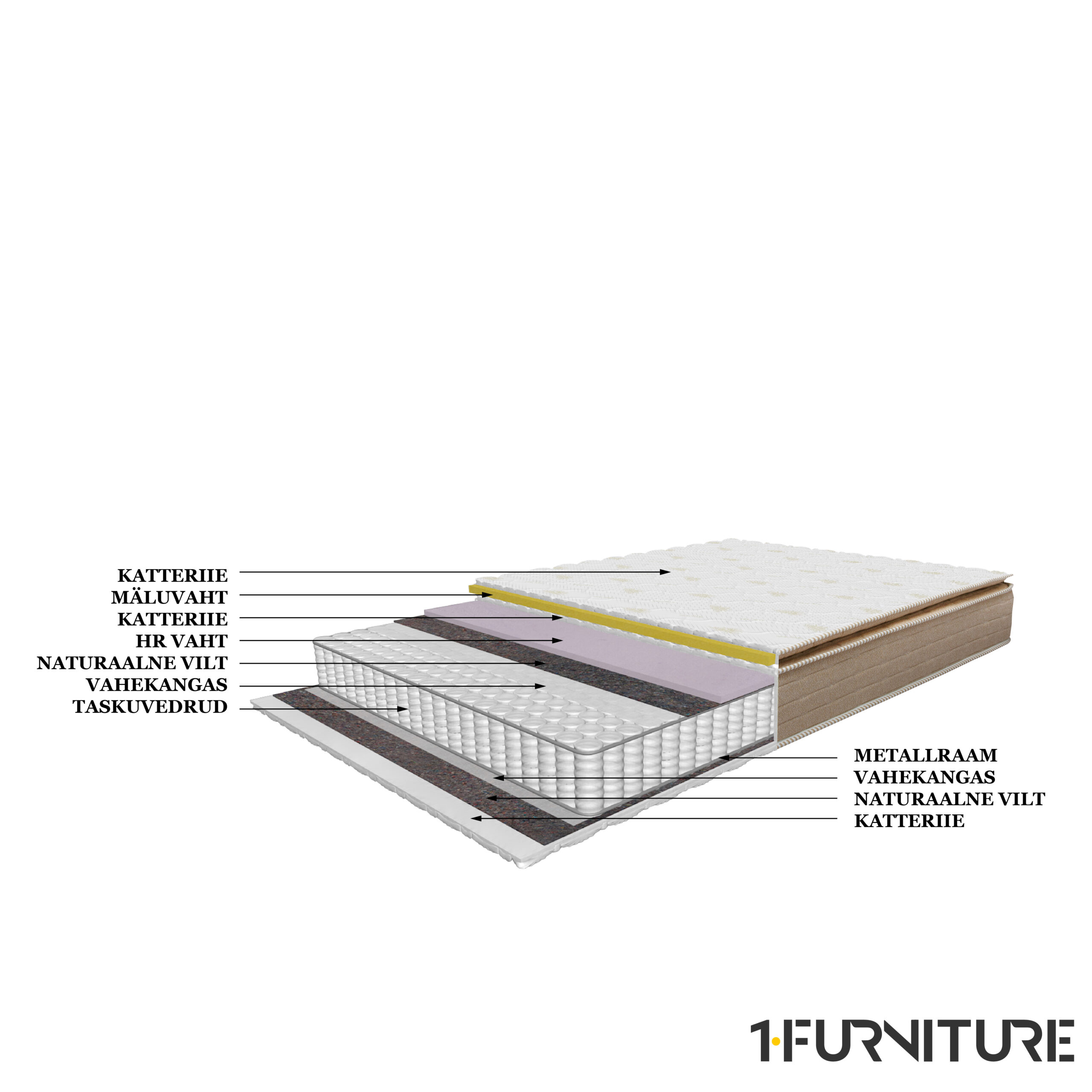 - Vedruplokk on tugevdatud metallraami ja vildikihiga, mis tagab selle, et madrats ei kaotaks oma kuju ning vormi.