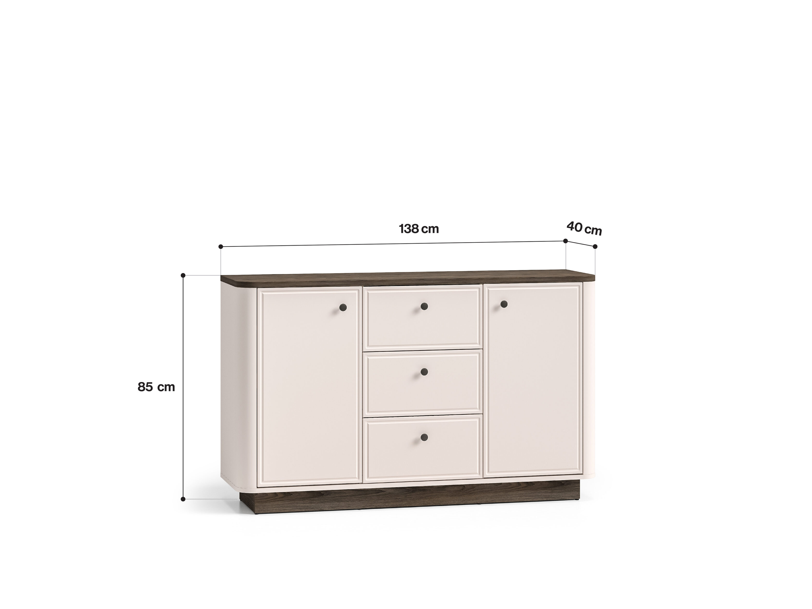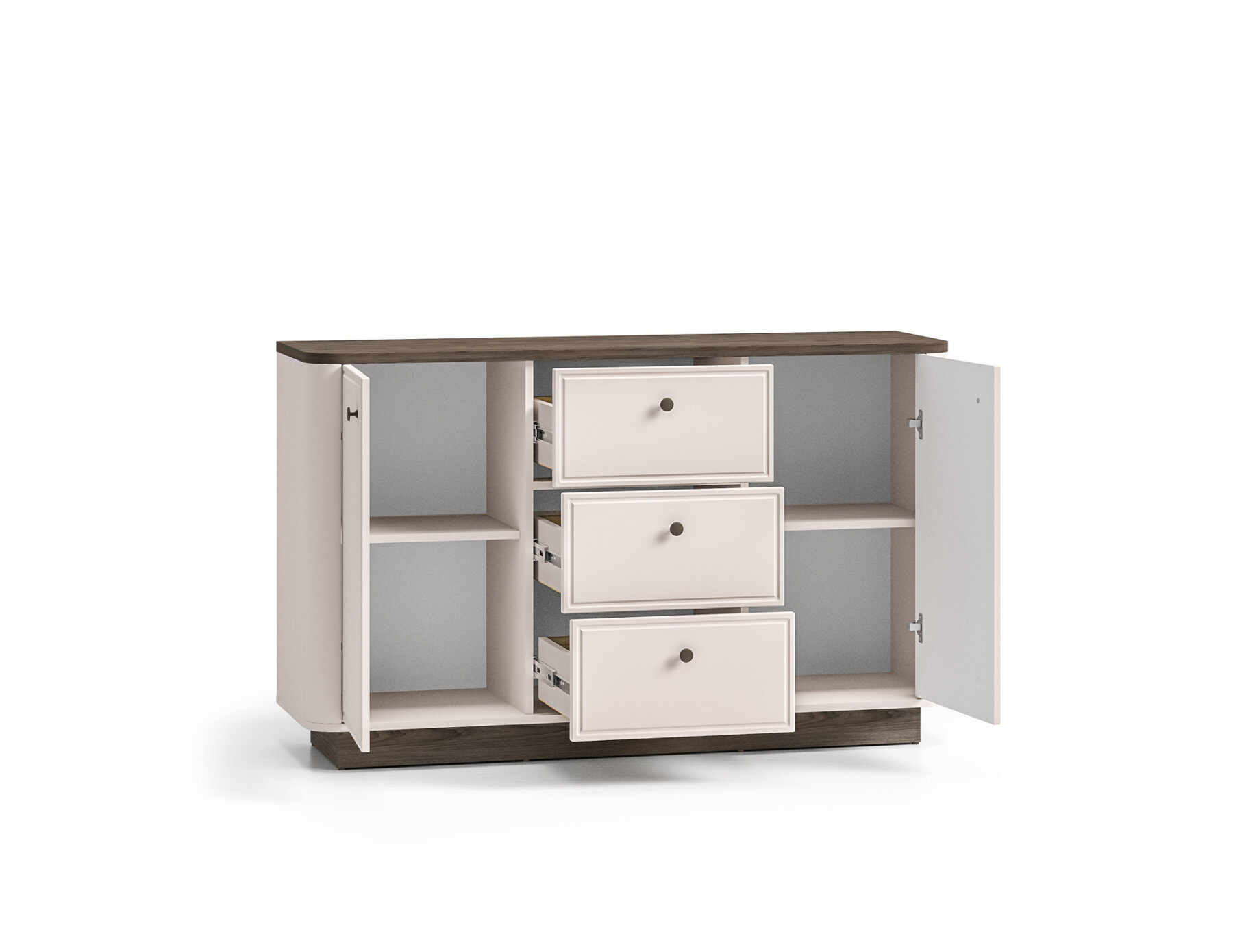 Mõlema ukse taga asuvad neli avarat sektsiooni riiete, rätikute või voodipesu hoidmiseks. Keskmises osas paikneb kolm sügavat sahtlit dokumentide, laudlinade või muude kodutekstiilide jaoks.