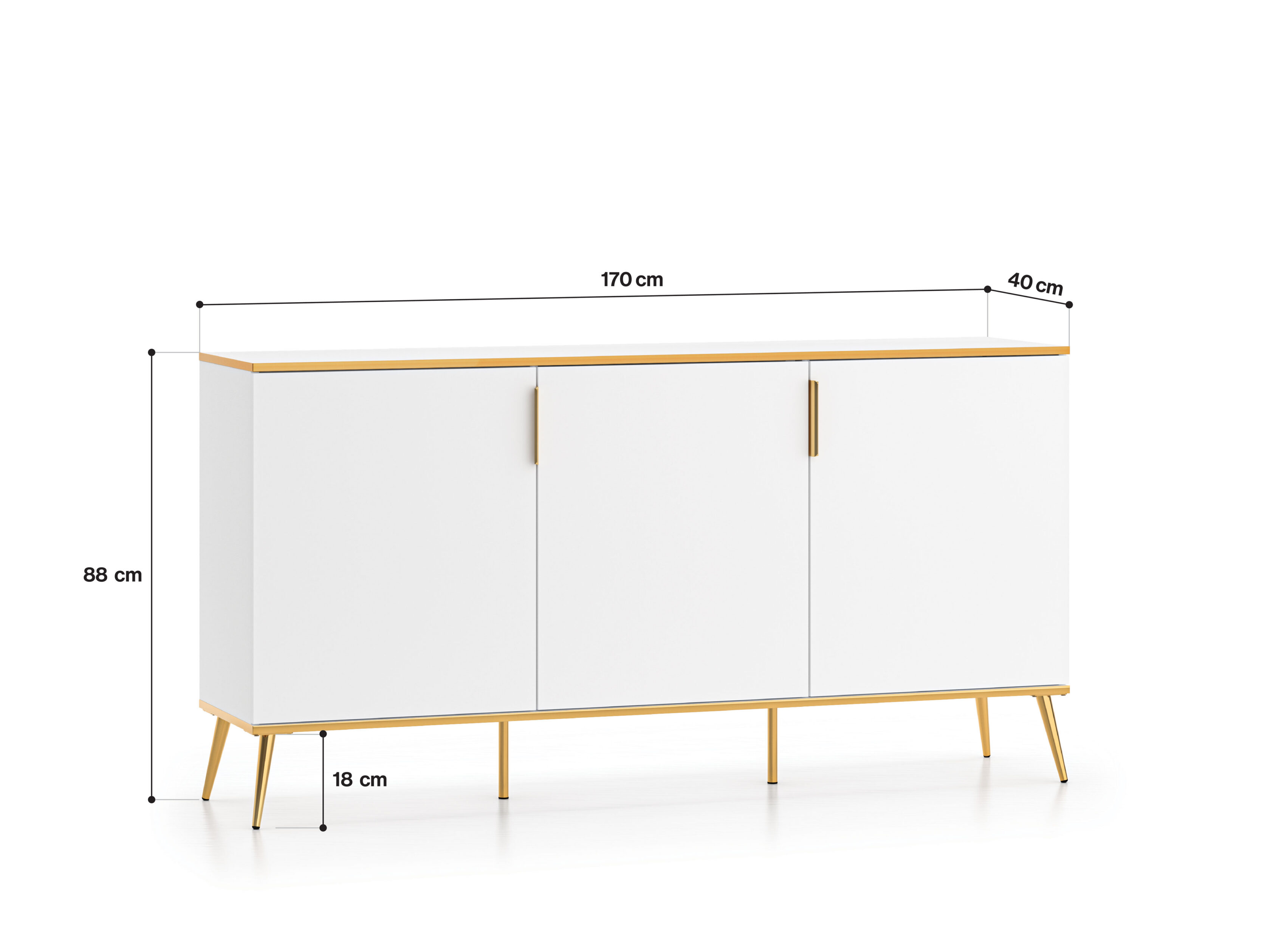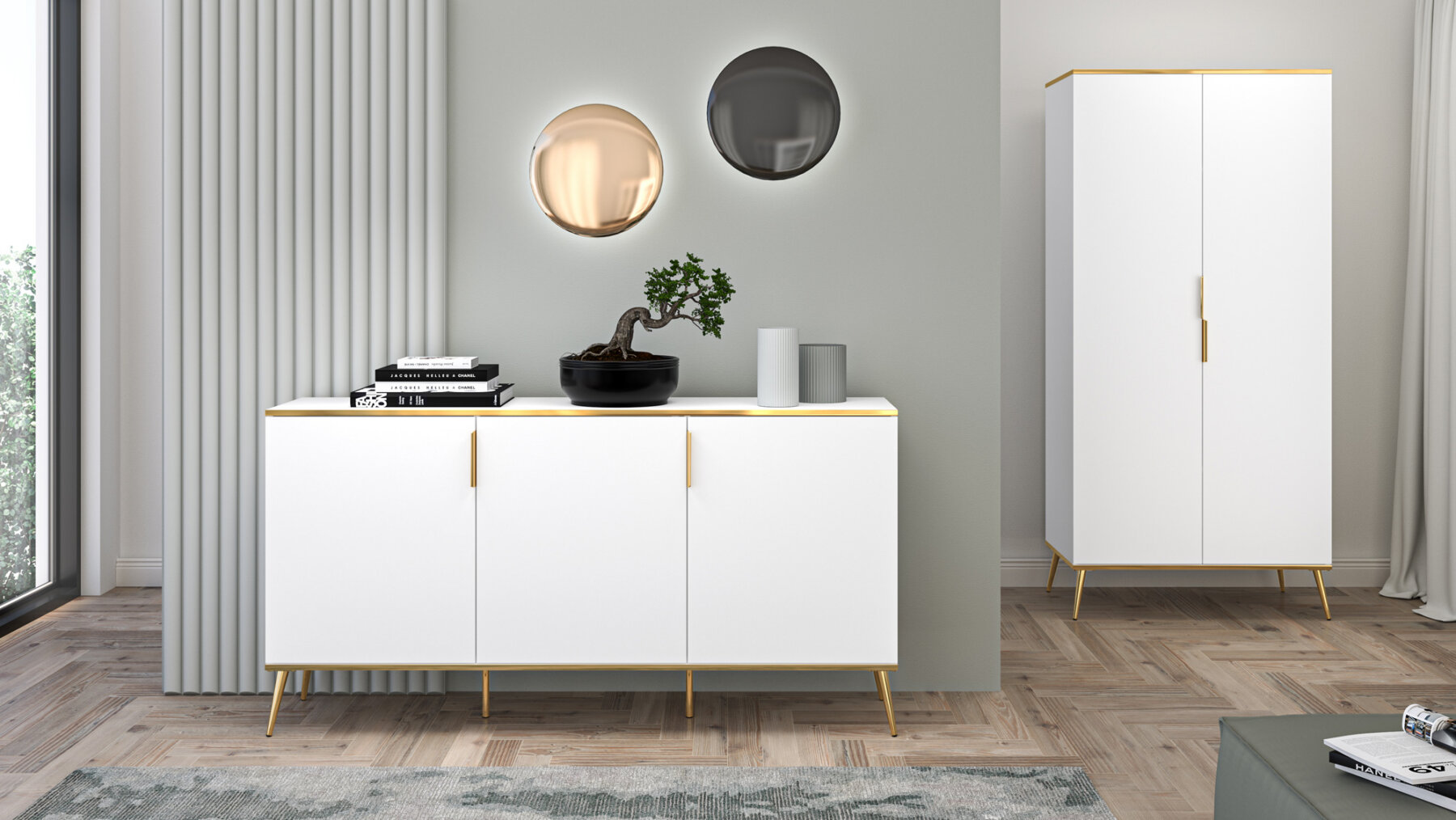 Valge viimistlus, metalljalad ja -käepidemed ning kuldset tooni detailid on Vitero kollektsiooni iseloomulikud tunnused.