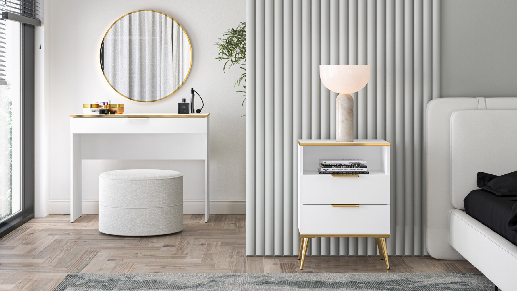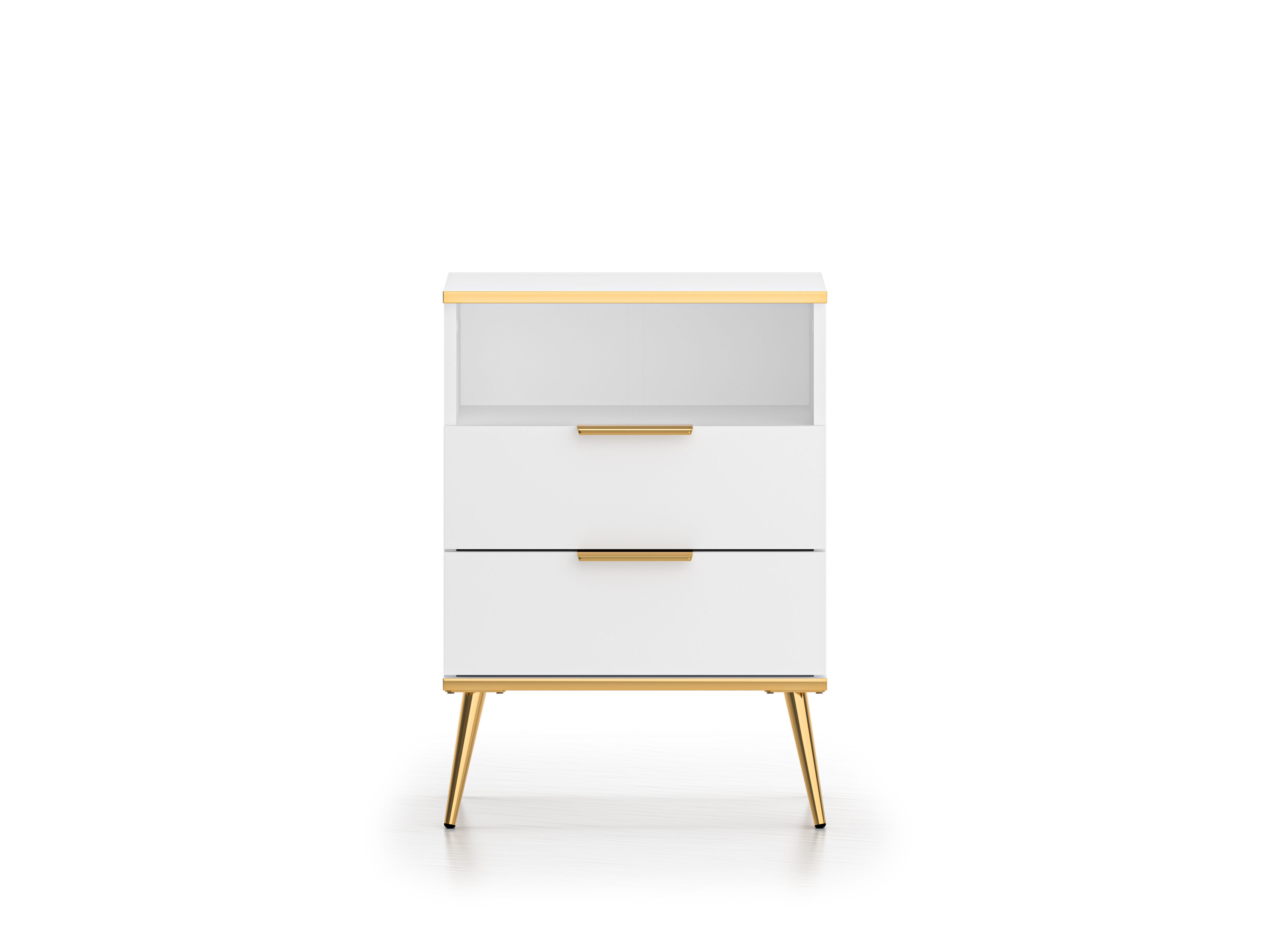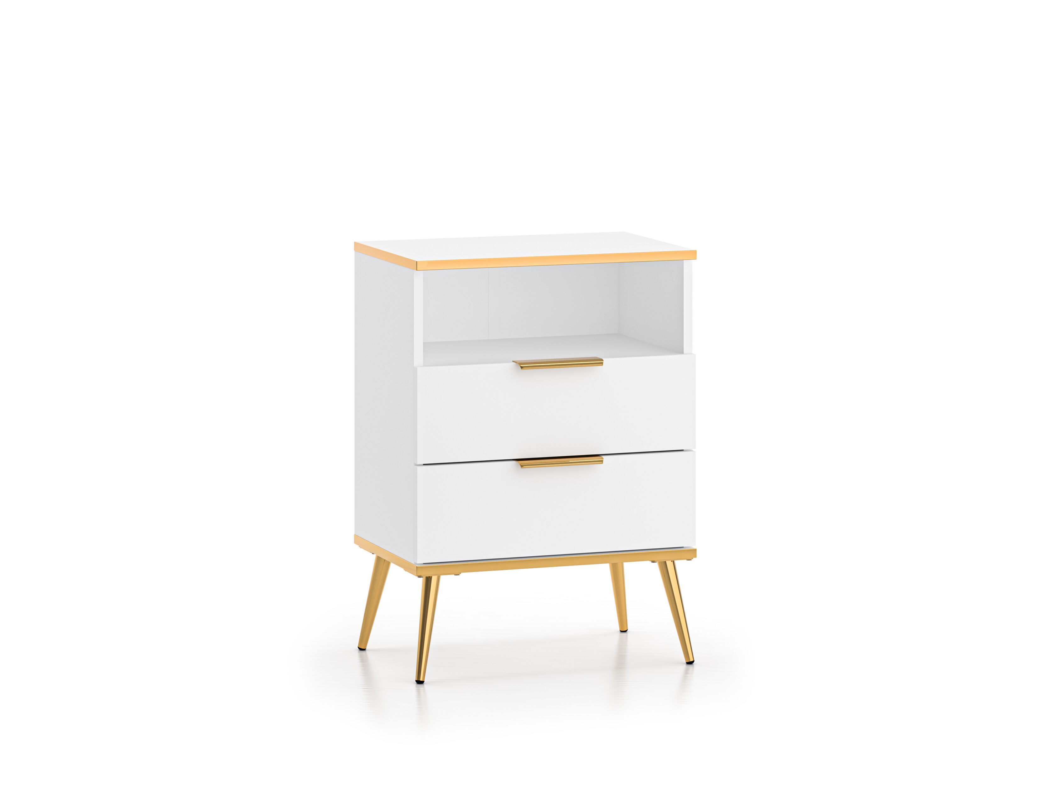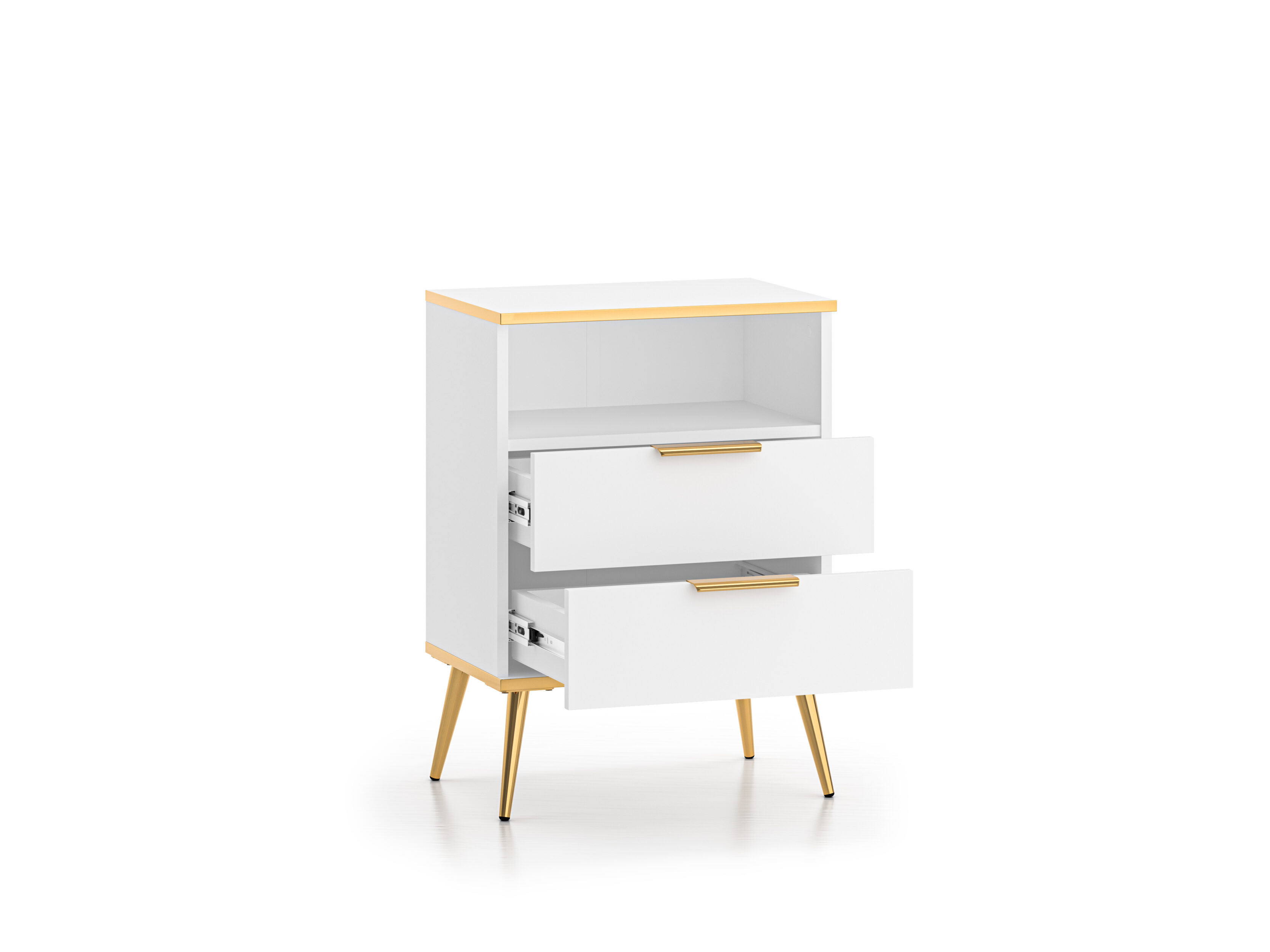 Valge viimistlus, metalljalad ja -käepidemed ning kuldset tooni pealispind on Vitero kollektsiooni iseloomulikud detailid.